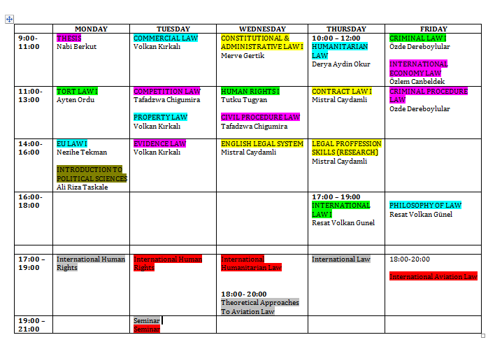 2020/2021 LL.B & LL.M P.h.D Courses Timetable