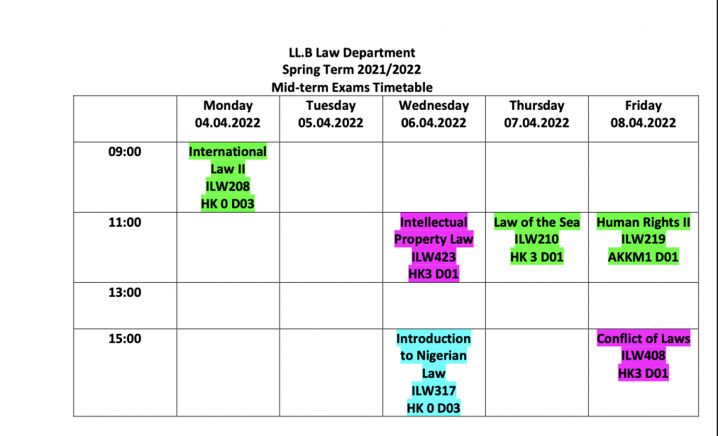 Mid-Term Exams Timetable – Spring Term 2021/2022