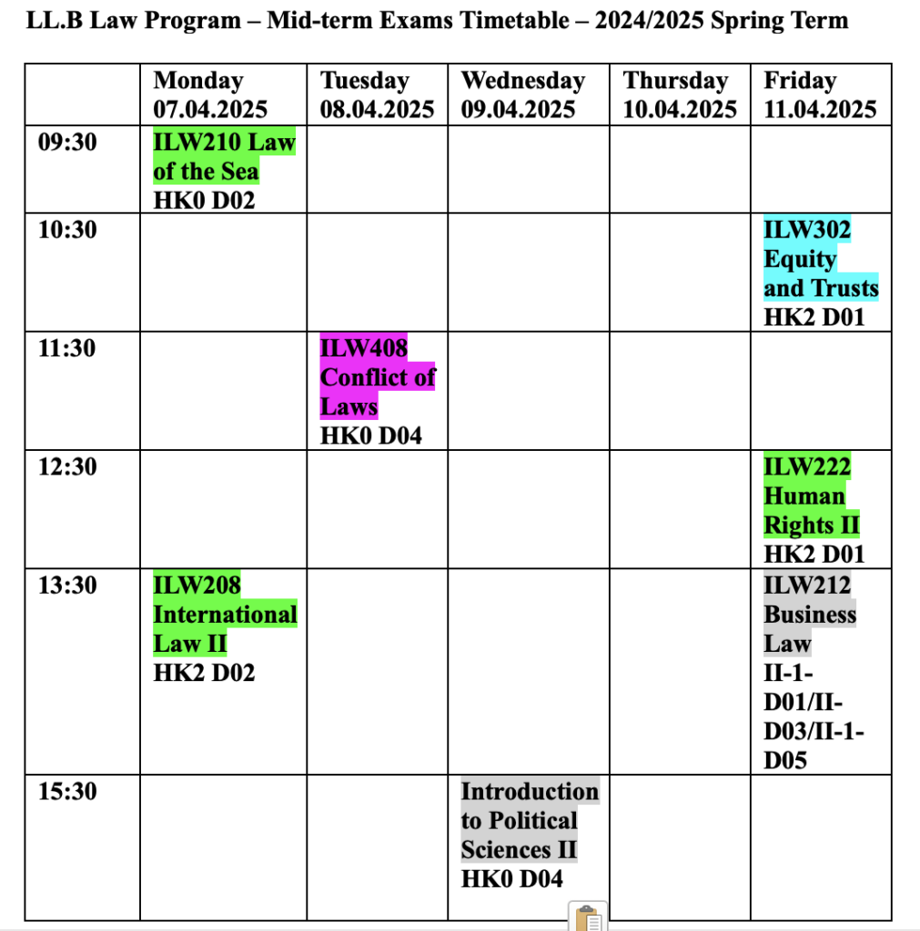 Mid-term Exams Timetable – Spring Term 2024/2025